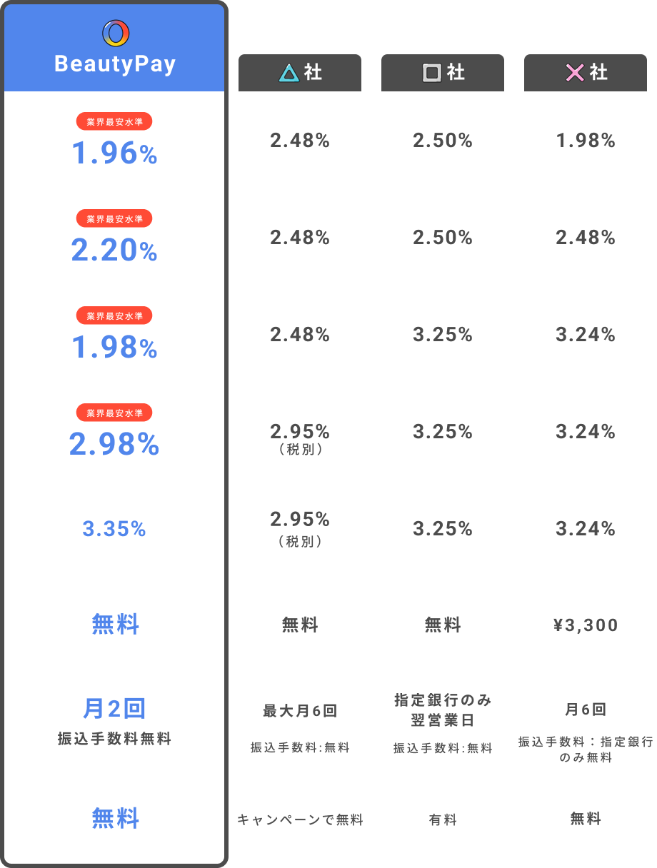 ・対象業種:美容室・ヘアサロン,理容室・床屋,ネイルサロン・まつげエクステ,マッサージ・リラクゼーション,鍼灸院・接骨院・整骨院